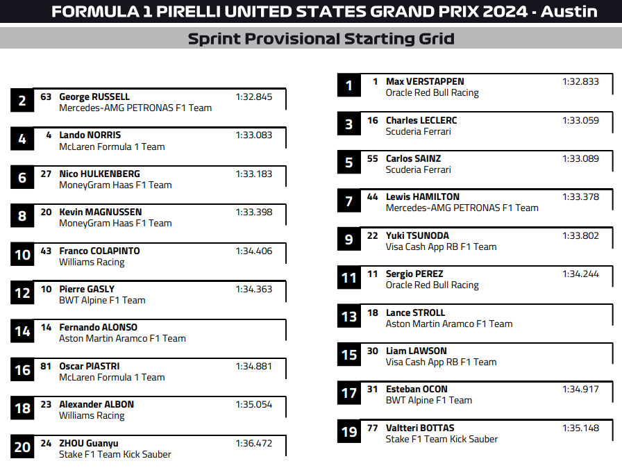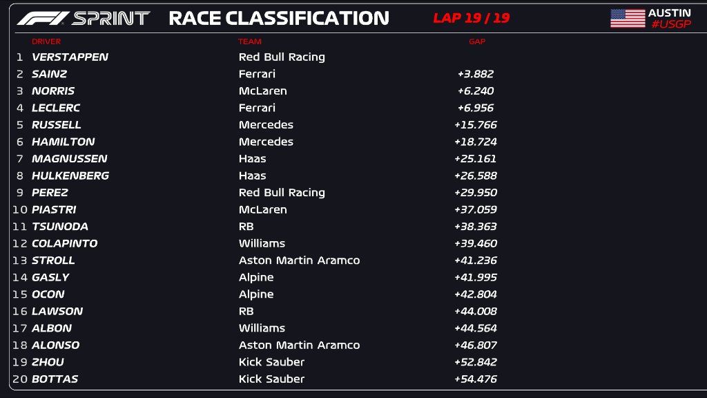 (F1 2024 USA GP Sprint Results)