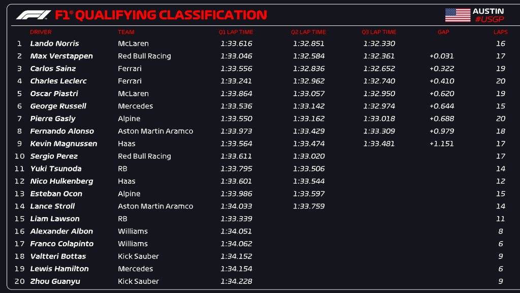 (F1 2024 USA GP Qualifying Results)