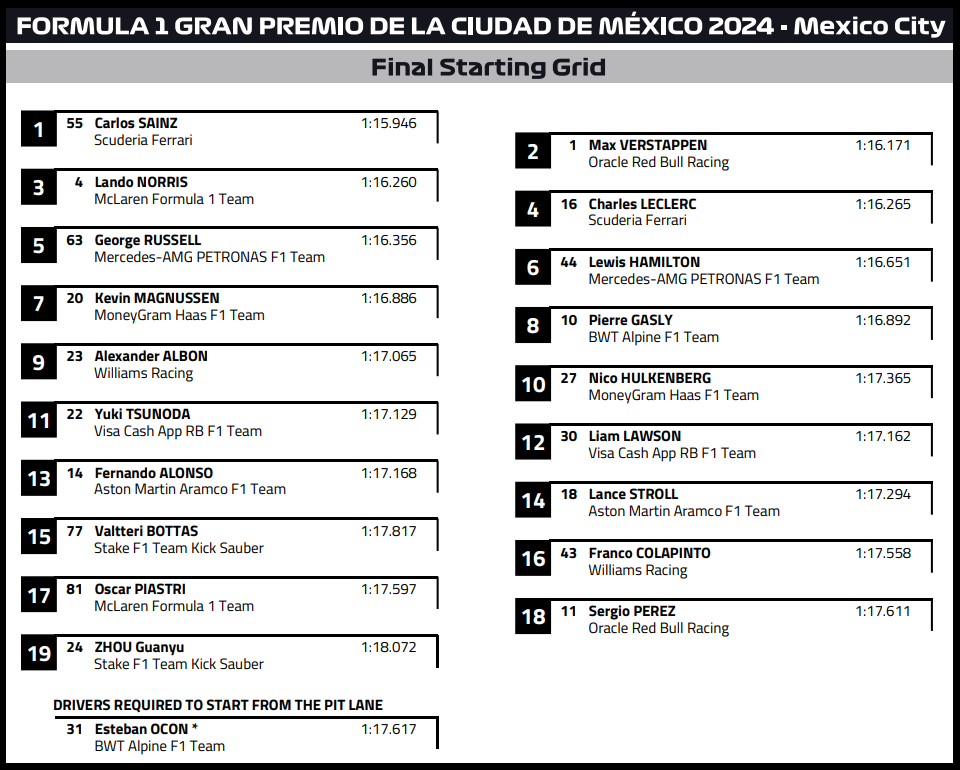 ( F1 2024 Mexico GP Race Results )