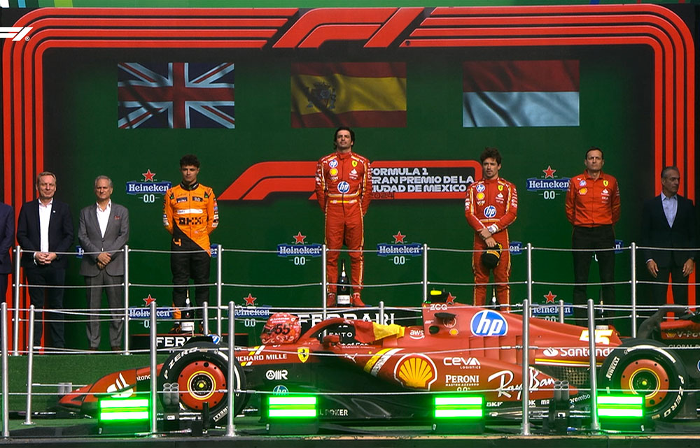 ■ 페라리의 사인츠가 3라운드 호주 그랑프리 우승이후 시즌 2번째 우승을 하면서 멕시코 그랑프리에서 폴투윈을 거머쥐었습니다. 2위를 하고 있던 팀 동료인 르끌레르가 약간의 실수로 2위 자리를 노리스에게 내주면서 다잡은 2경기 연속 원투 피니쉬 기회를 아쉽게 놓쳤습니다.
