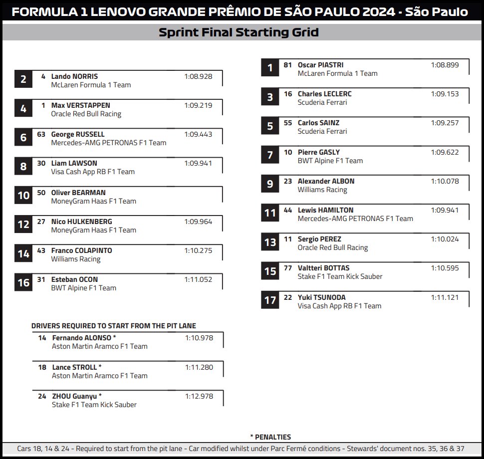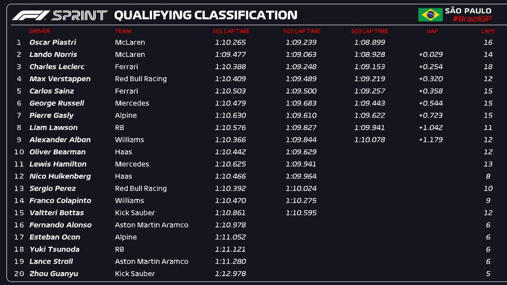 F1.2024.R21 - 브라질 그랑프리 스프린트 결과 (F1 2024 Brazil GP Sprint Results)