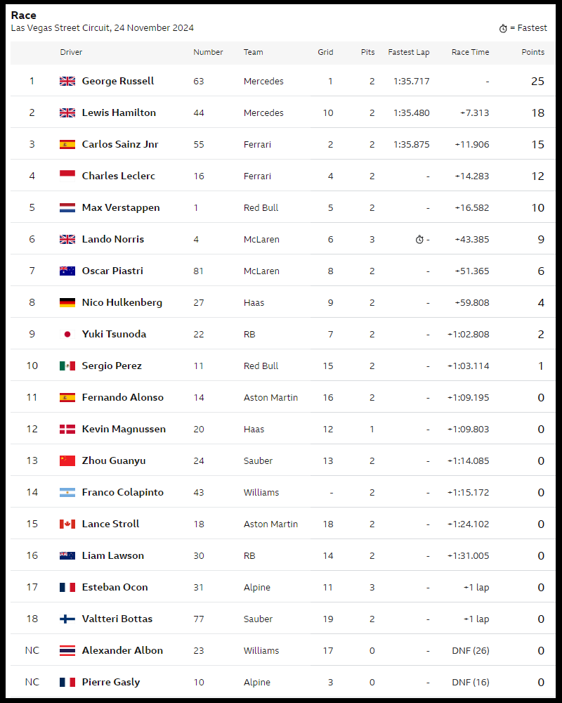 ( F1 2024 Las Vegas GP Race Results )