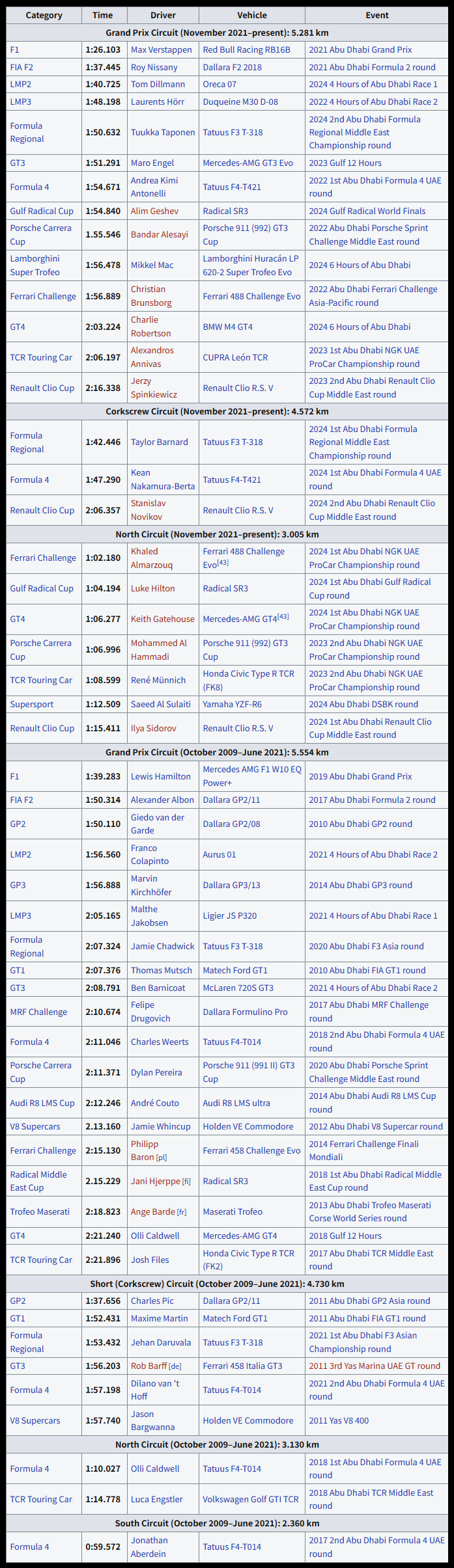 오픈한 2009년에 처음으로 F1 그랑프리가 열렸으며 당시 레드불 소속의 베텔이 우승을 차지했습니다. 이 서킷은 F1을 비롯해, F2, F3 아시아 챔피언십등 여러 모터스포츠가 열리는 서킷입니다.