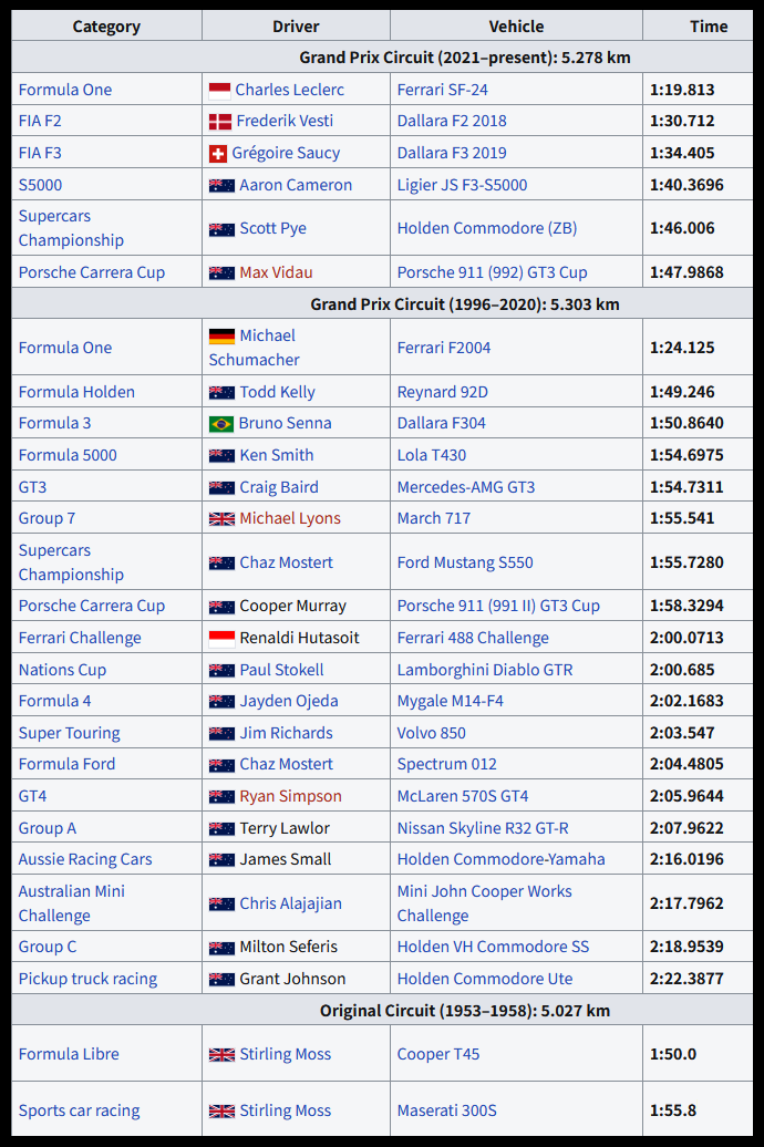 호주 그랑프리는 2019년 이후 2년동안은 코로나로 인해 개최되지 않았다가 2022년에 다시 재개되었으며.3년만에 다시 열린 2022년 대회부터 서킷의 변화가 약간 생겼는데 2019년까지 있었던 섹터2의 8번과 9번사이의 시케인에 가까운 코너가 사라져서 완만한 곡선주로로 변경되어 이로 인해 기록이 많이 단축되었습니다.