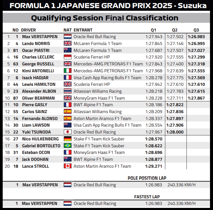 (F1 2025 Japan GP Qualifying Results)