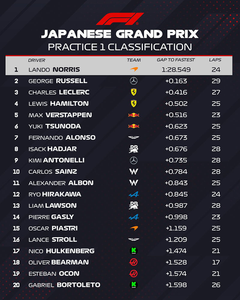F1.2025.R03 - 일본 그랑프리 예선 결과 (F1 2025 Japan GP Qualifying Results)
