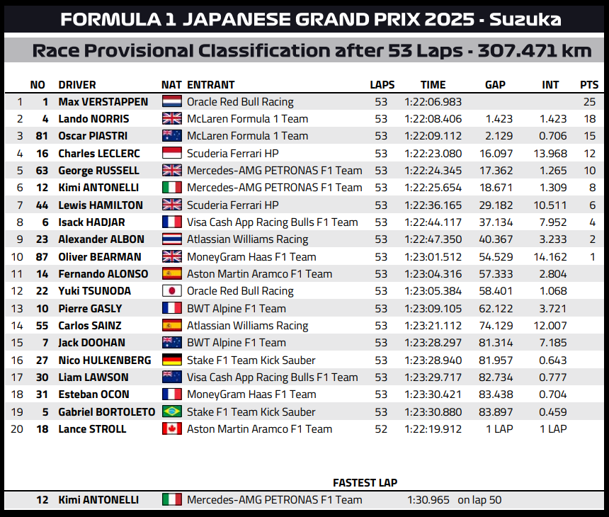 F1.2025.R03 - 일본 그랑프리 레이스 결과