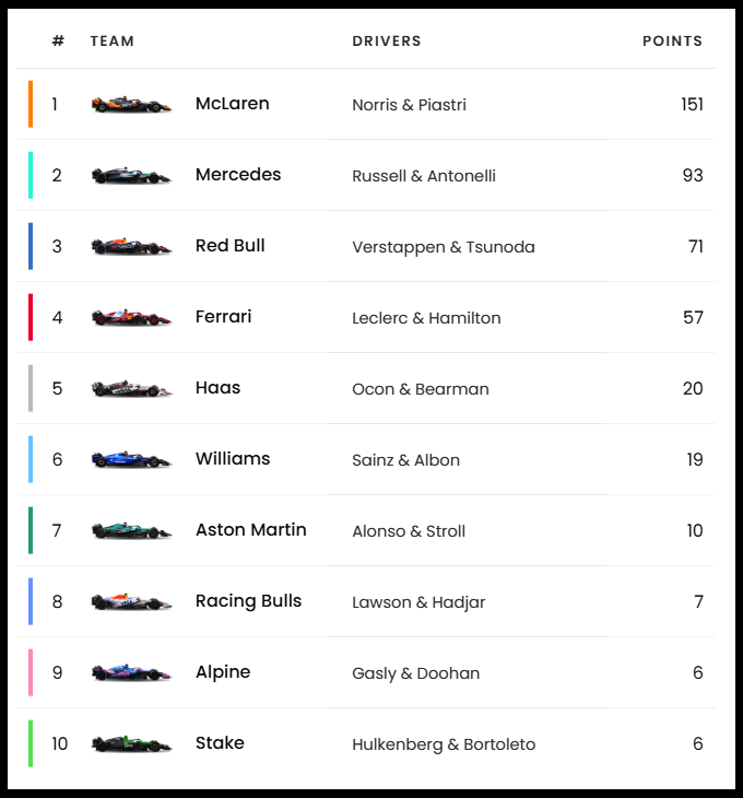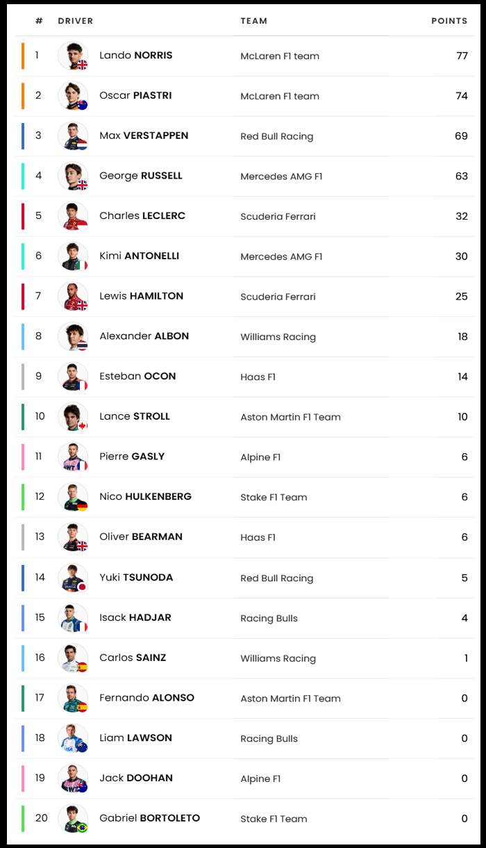 F1 2025 시즌 전체 상황표