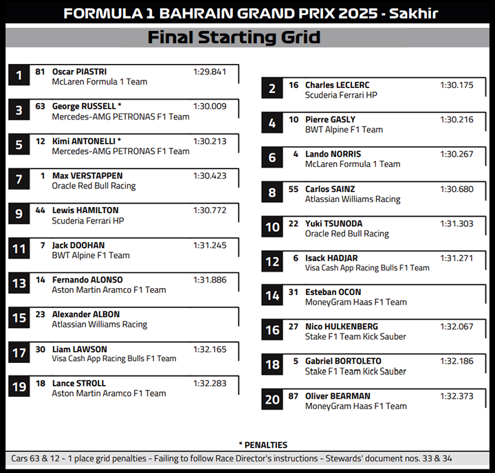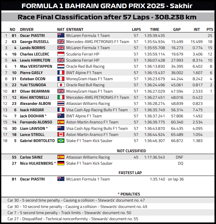 ( F1 2025 Bahrain GP Race Results )