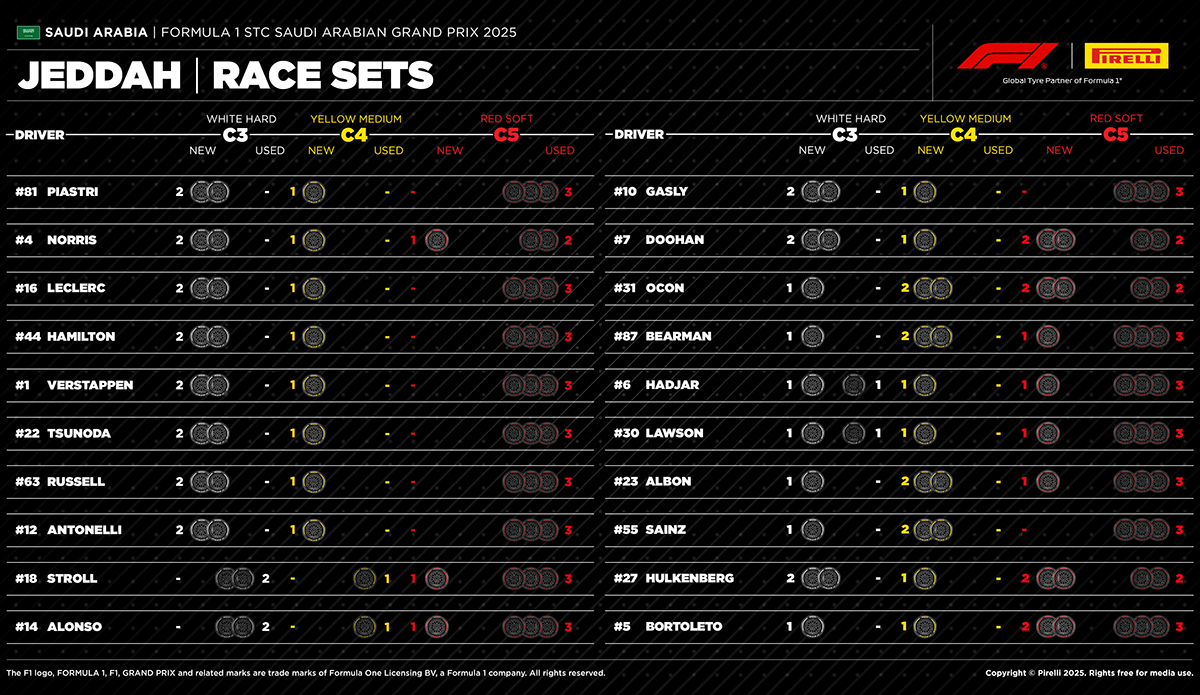 사우디 아라비아 그랑프리 사용타이어