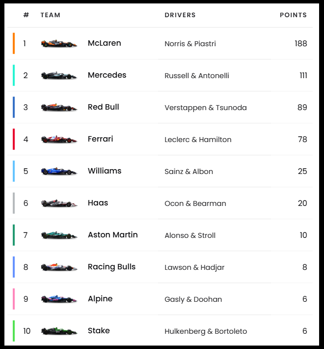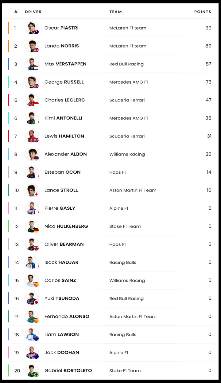 F1 2025 시즌 전체 상황표