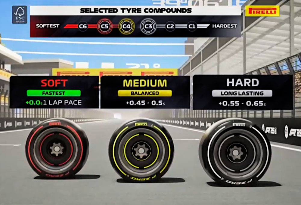사용 타이어 세트( C3 하드◎, C4 미디엄◎, C5 소프트◎ )