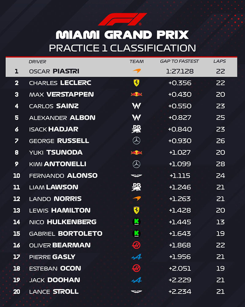 (F1 2025 Miami GP Qualifying Results)