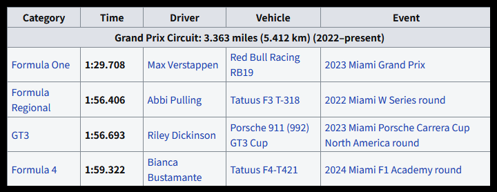 마이애미 인터내셔널 오토드롬 트랙 기록들