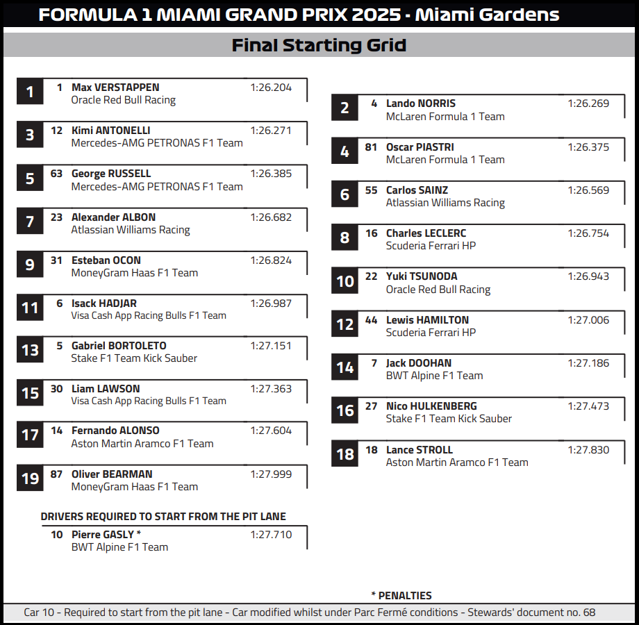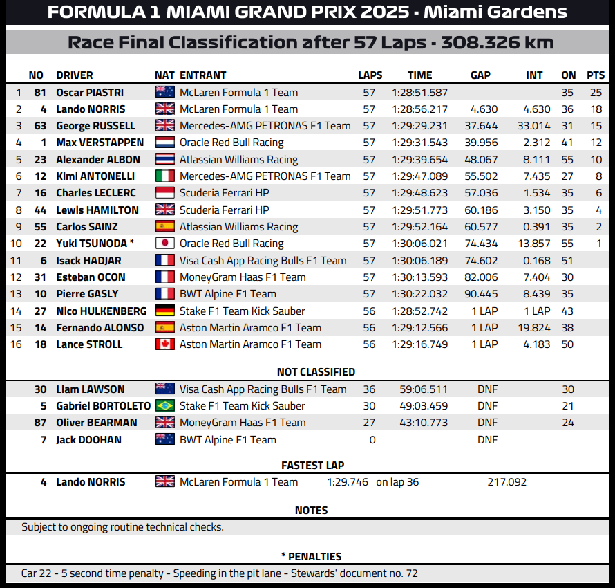 ( F1 2025 Miami GP Race Results )