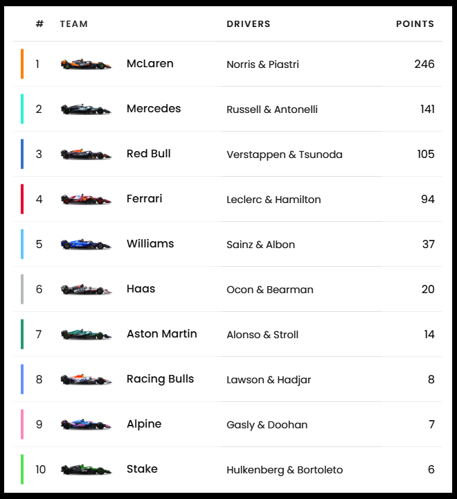 F1 2025 시즌 전체 상황표