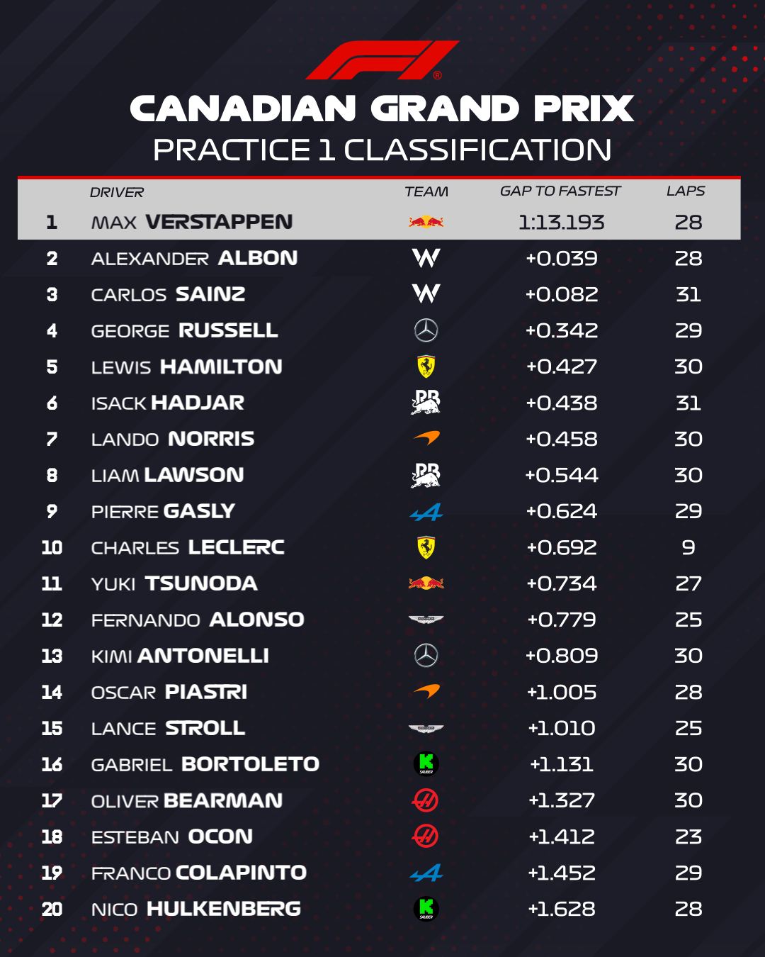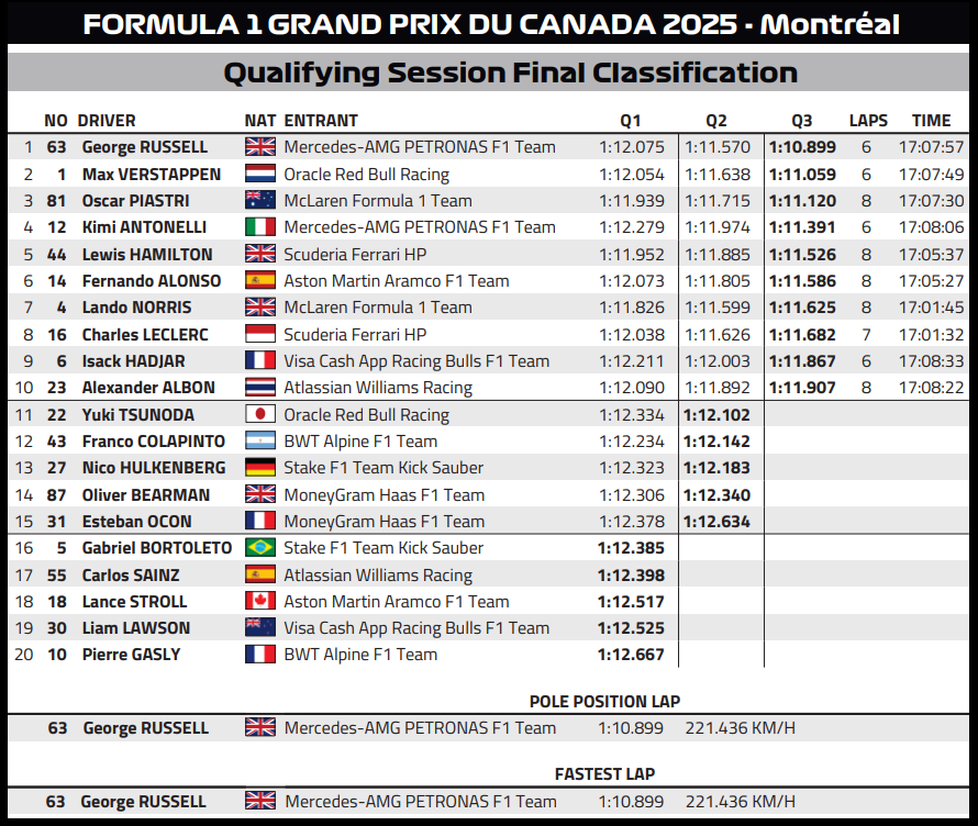 (F1 2025 Canada GP Qualifying Results)