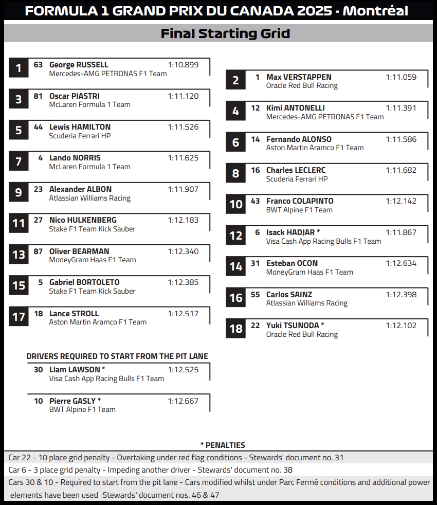 F1.2025.R10 - 캐나다 그랑프리 레이스 결과