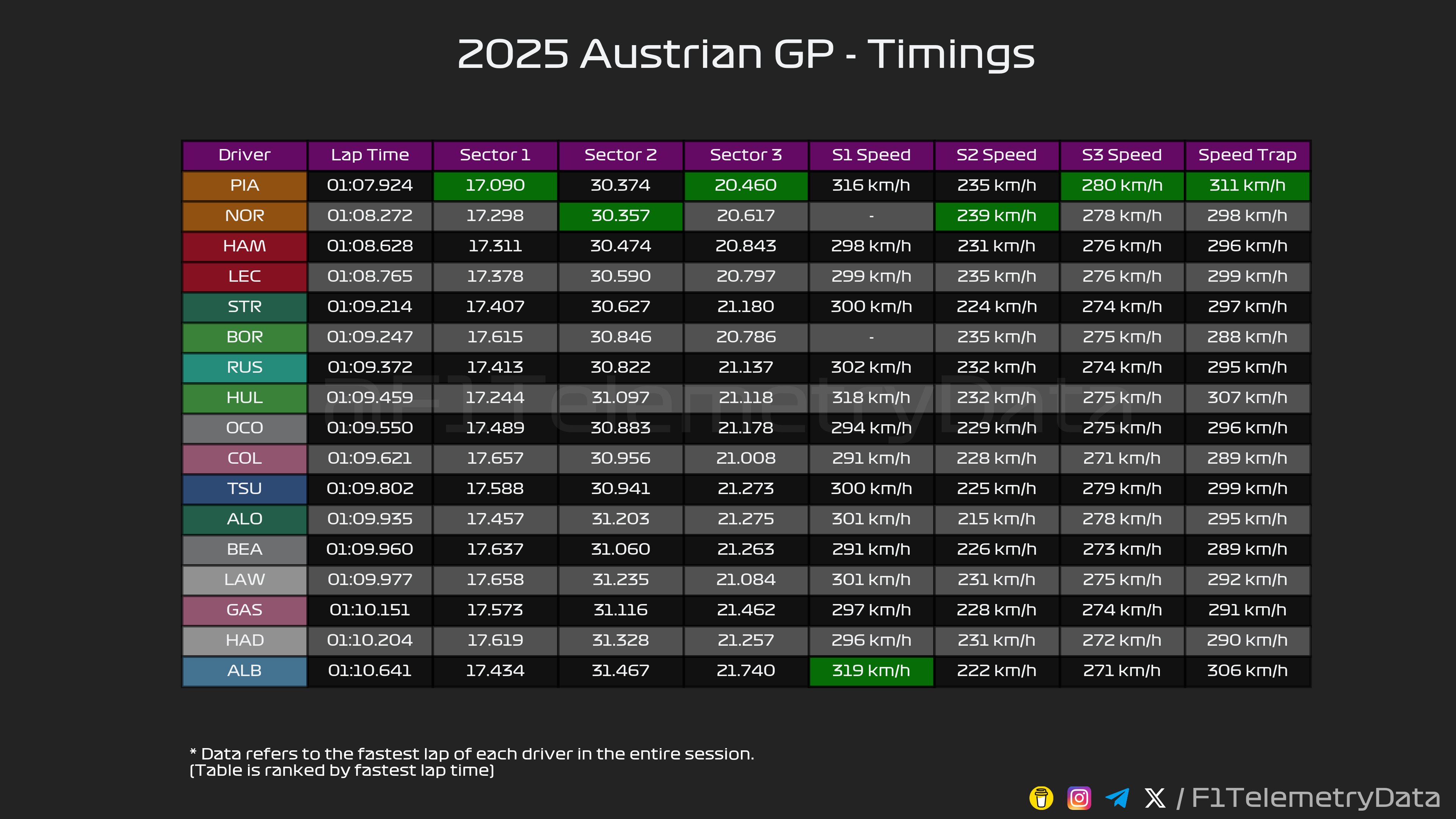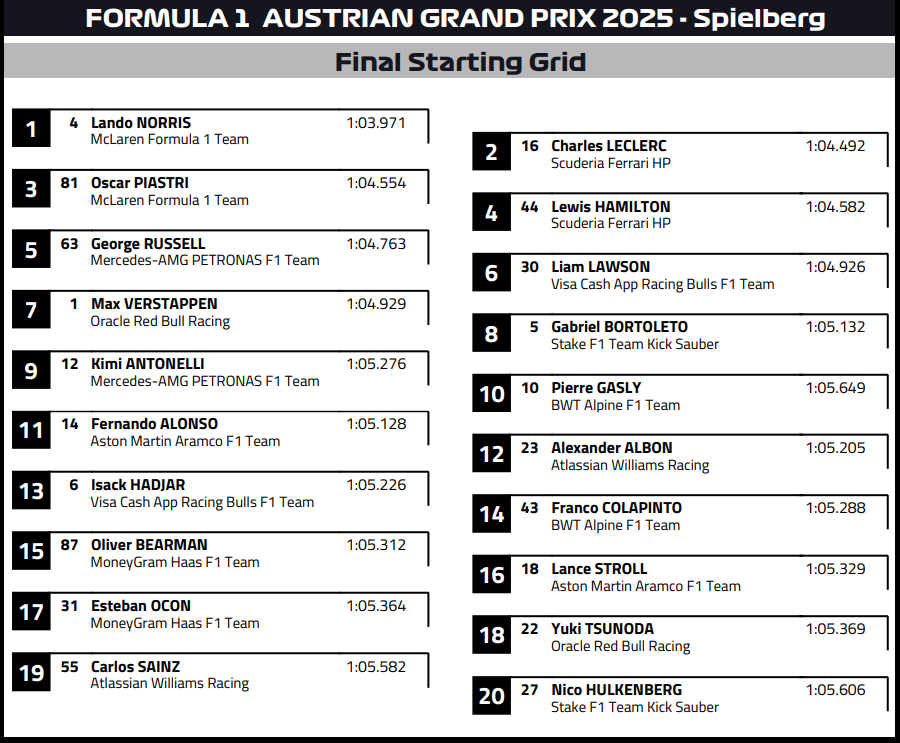 F1.2025.R11 - 오스트리아 그랑프리 레이스 결과( F1 2025 Austria GP Race Results )