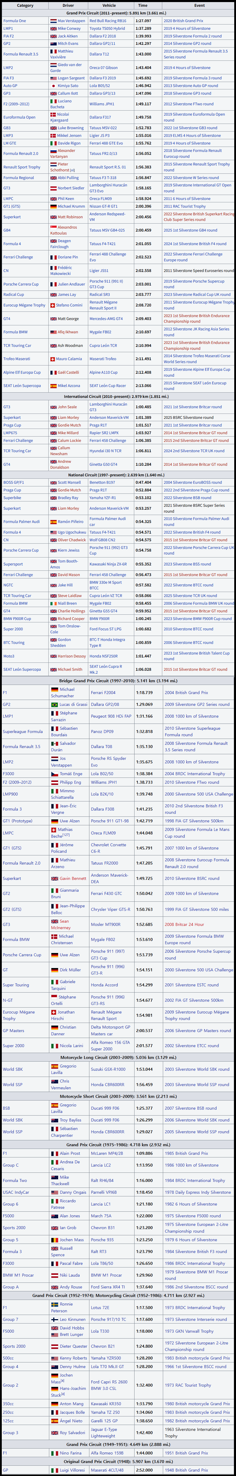 실버스톤 서킷 트랙 기록들