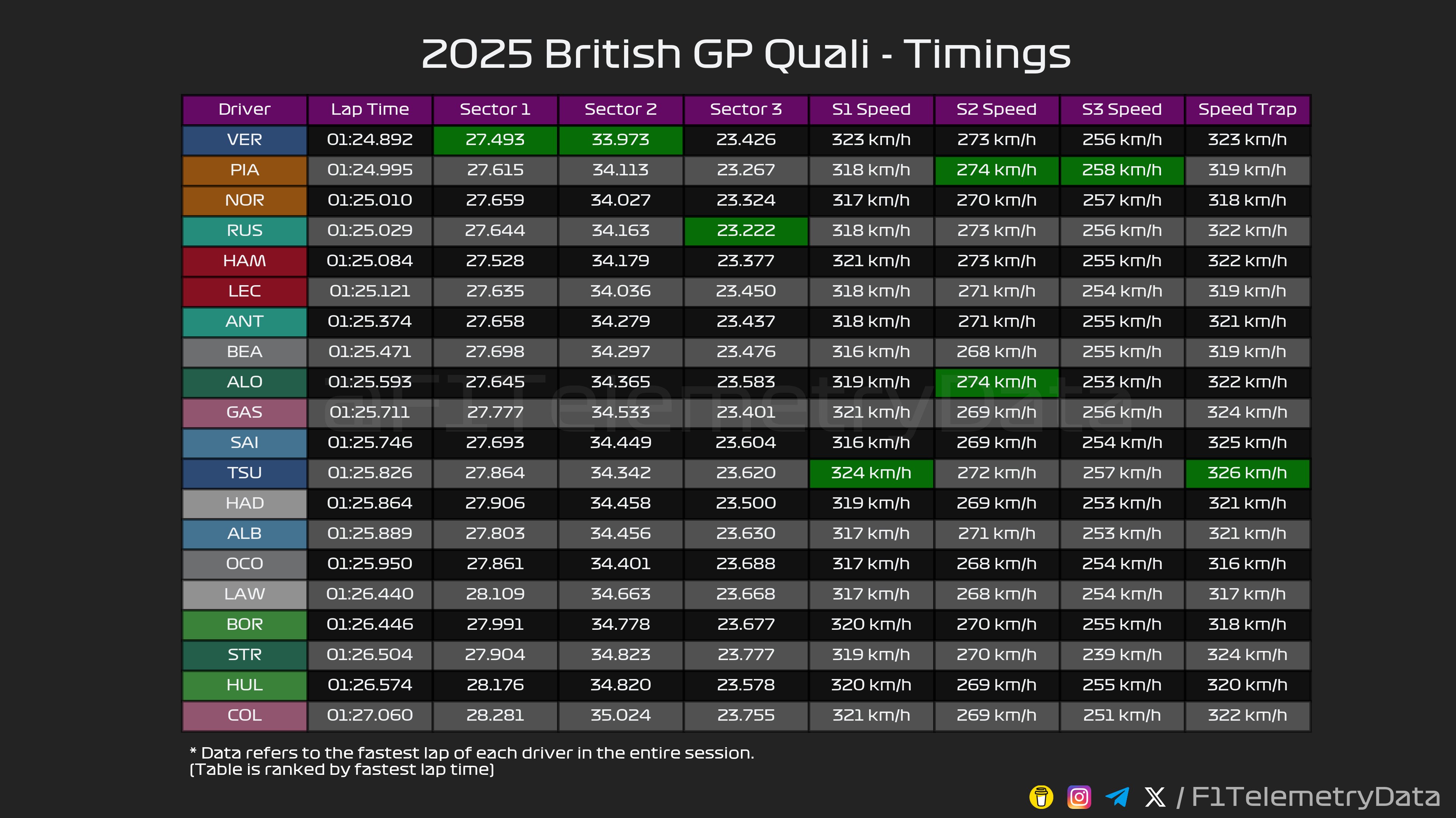 F1.2025.R12 - 영국 그랑프리 예선 결과