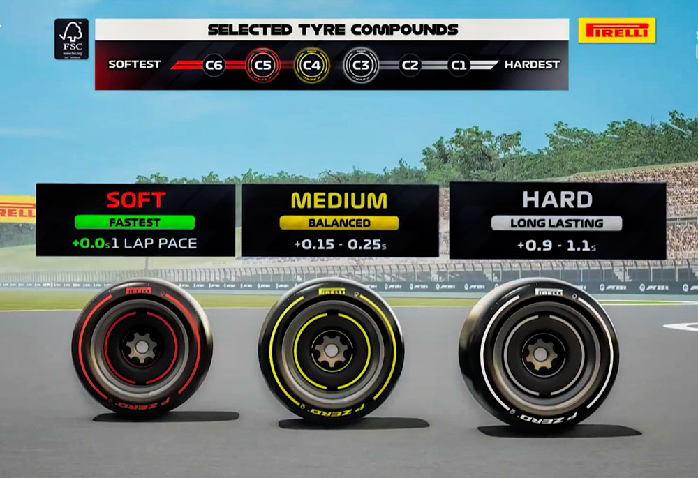 사용 타이어 세트( C3 하드◎, C4 미디엄◎, C5 소프트◎ )