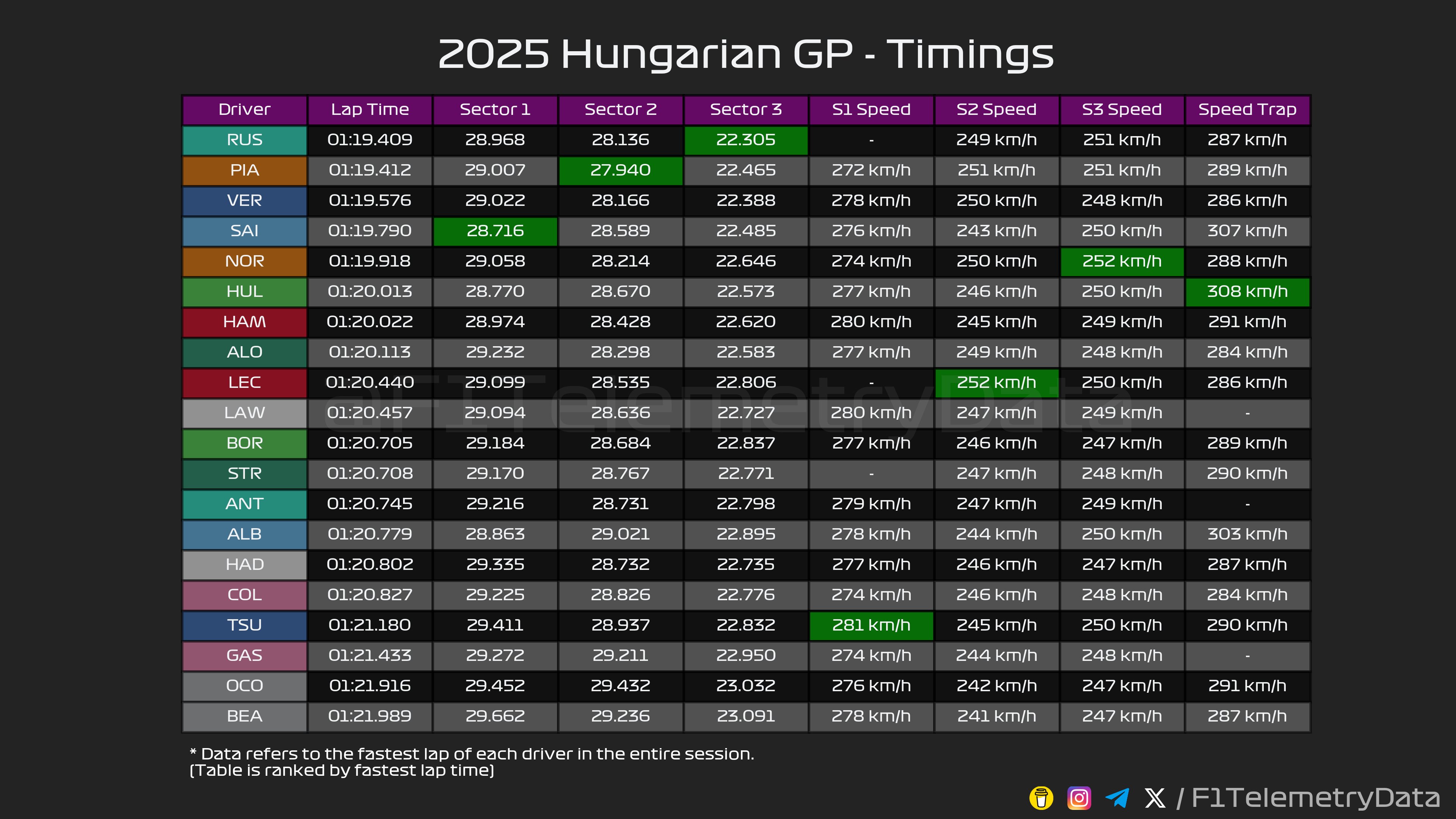 F1.2025.R14 - 헝가리 그랑프리 레이스 결과