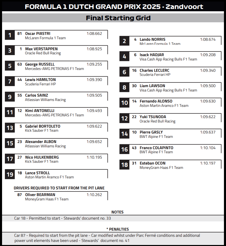 F1.2025.R15 - 네덜란드 그랑프리 레이스 결과( F1 2025 Dutch GP Race Results )