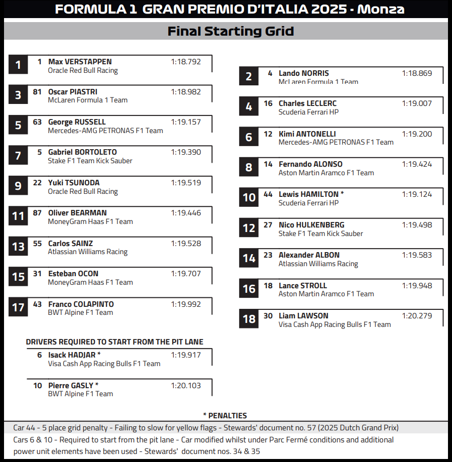 ( F1 2025 Italy GP Race Results )