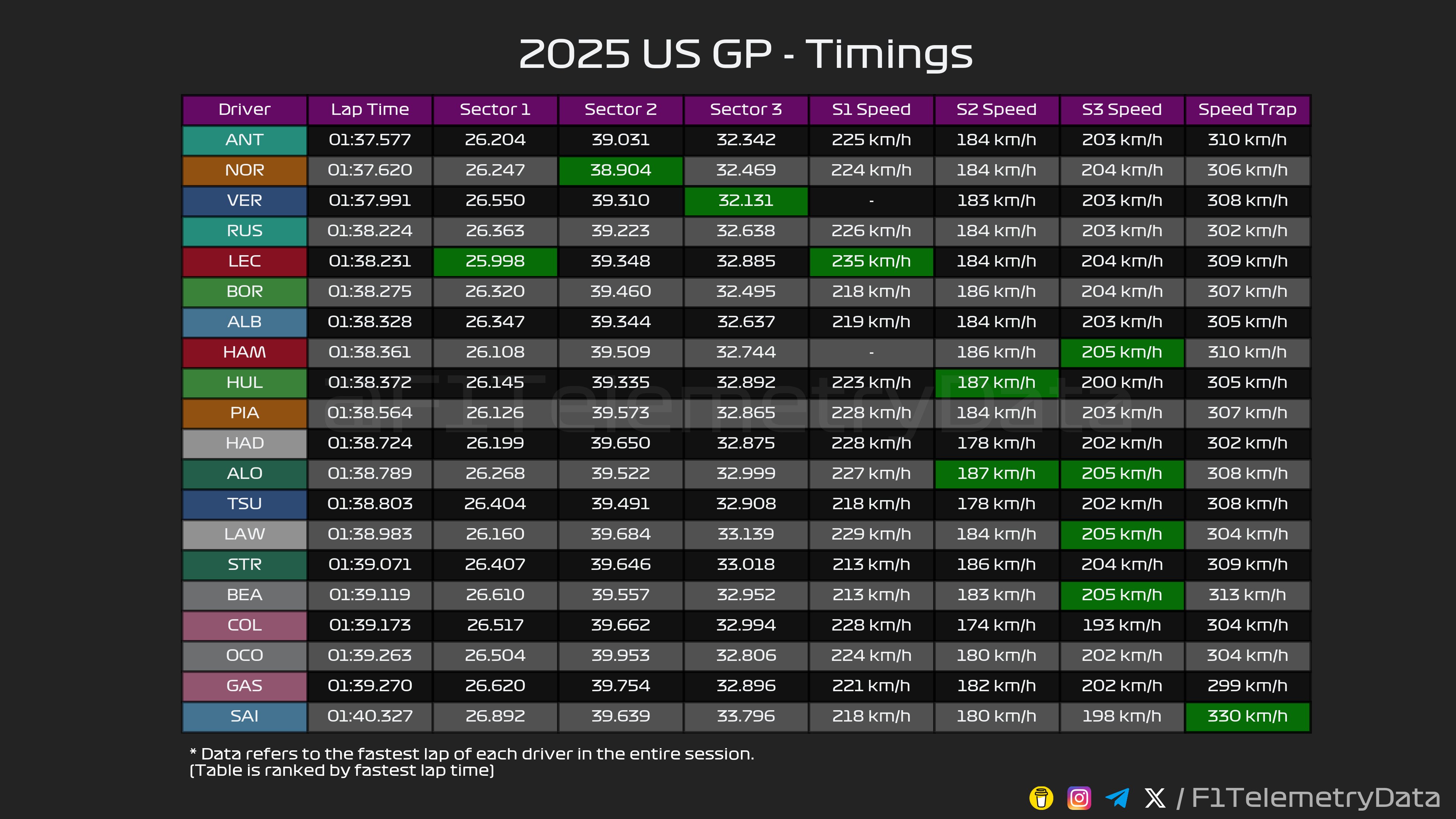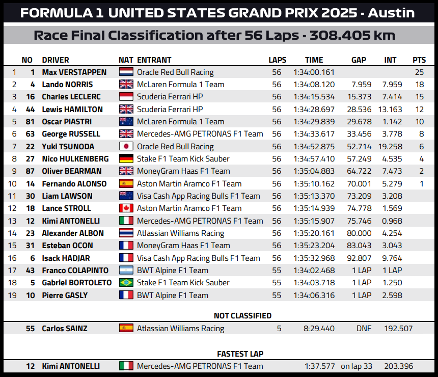 ( F1 2025 USA GP Race Results )