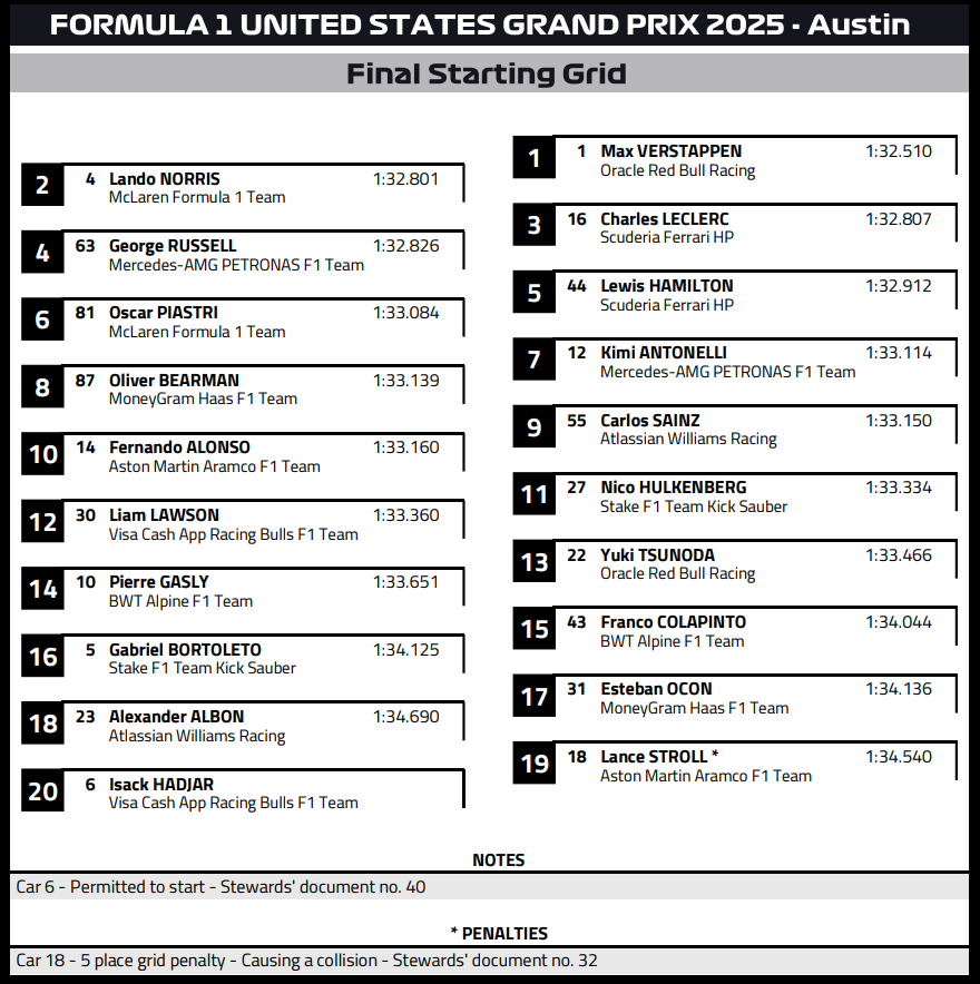 F1.2025.R19 - 미국 그랑프리 레이스 결과