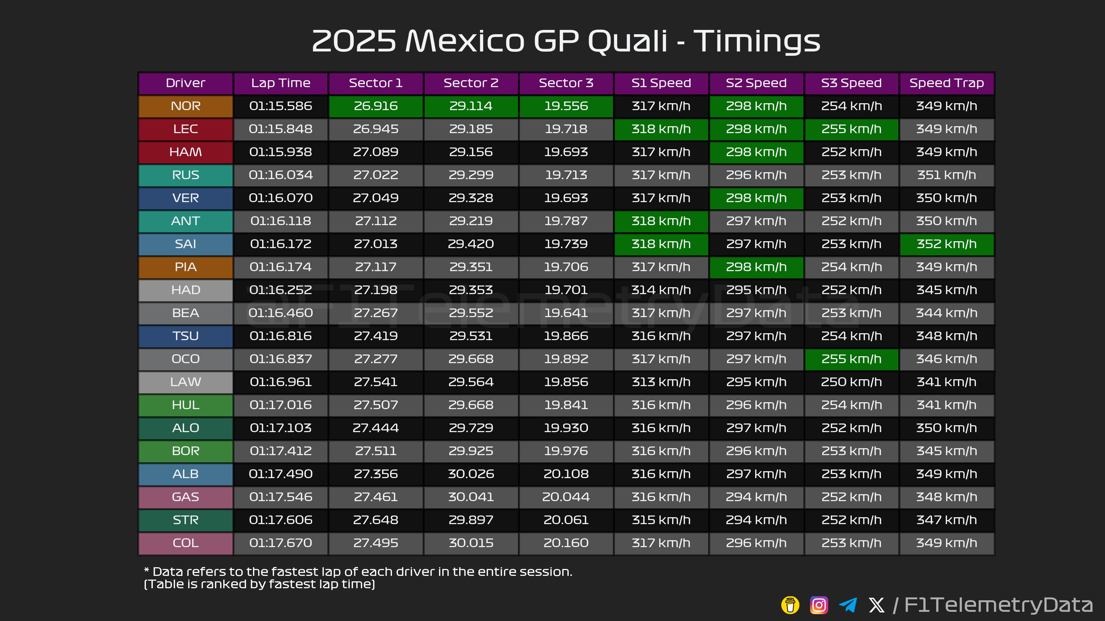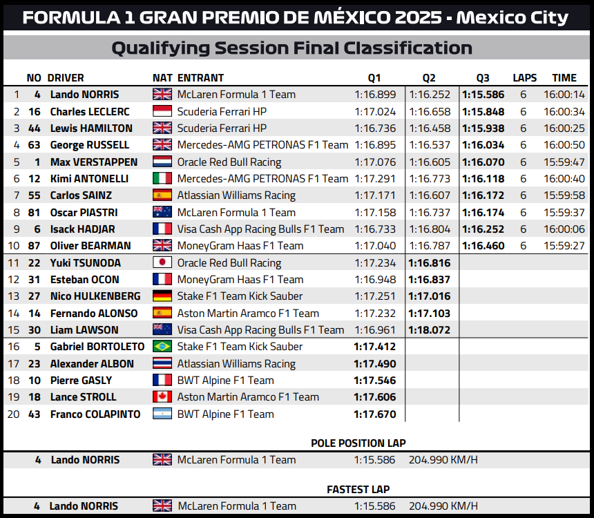 F1.2025.R20 - 멕시코 그랑프리 예선 결과 (F1 2025 Mexico GP Qualifying Results)