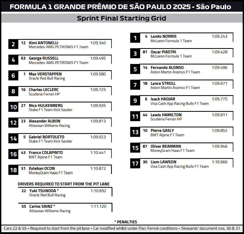 F1.2025.R21 - 브라질 그랑프리 스프린트 레이스 결과
