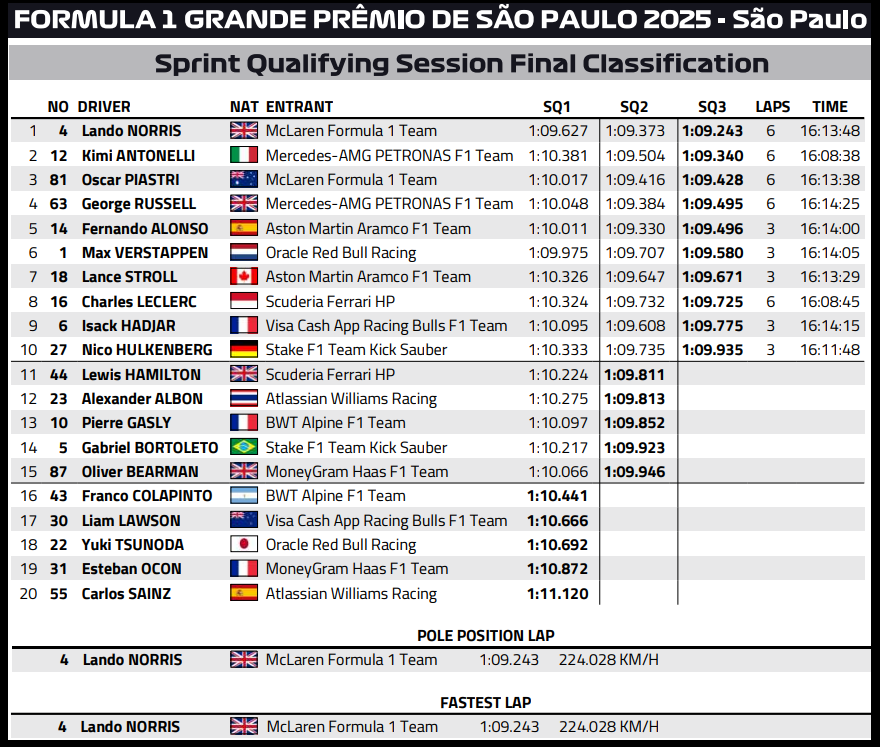 (F1 2025 Brazil GP Sprint Results)