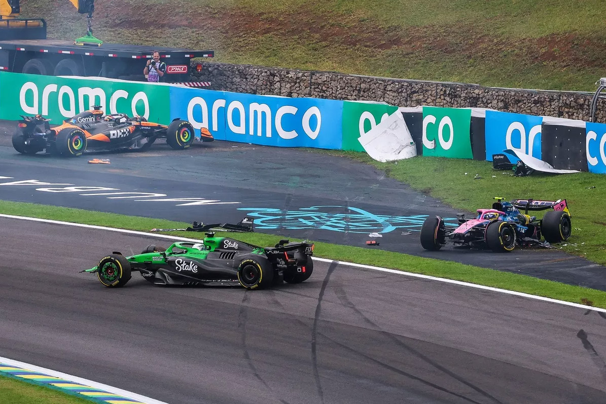 ■ 경기전에 비가와서 젖어있었던 이번 스프린트는 악몽같았던 2003년 브라질 그랑프리를 약간 연상시키는 같은 장소에서 3명의 드라이버가 같은 사고를 내는 장면이 나오면서 세션이 20분넘게 중단되었다가 재개되었습니다.