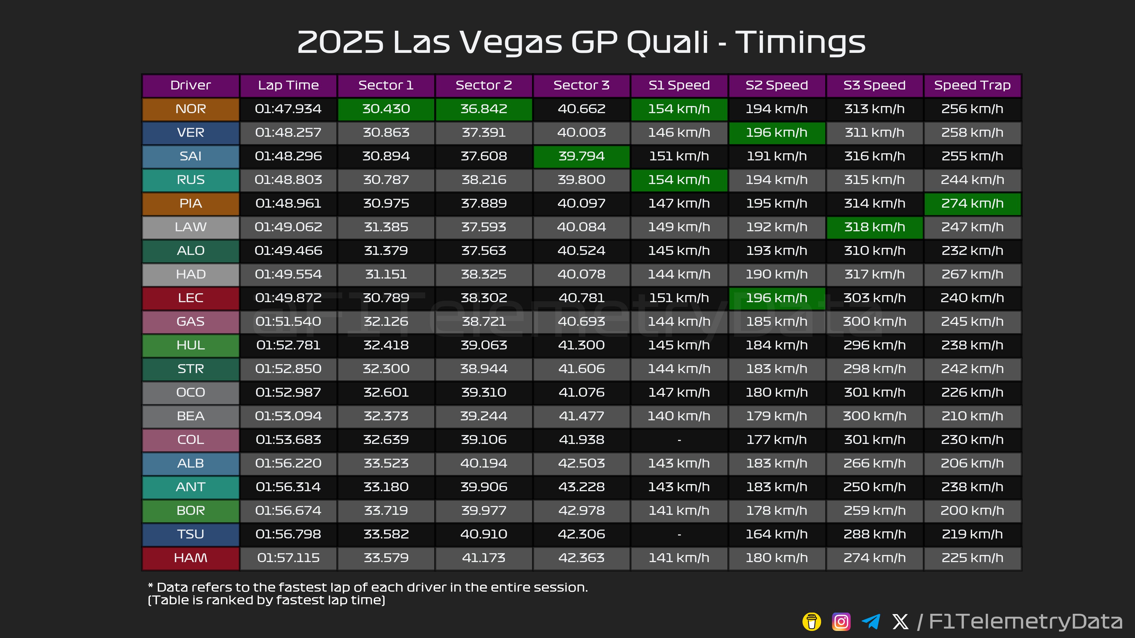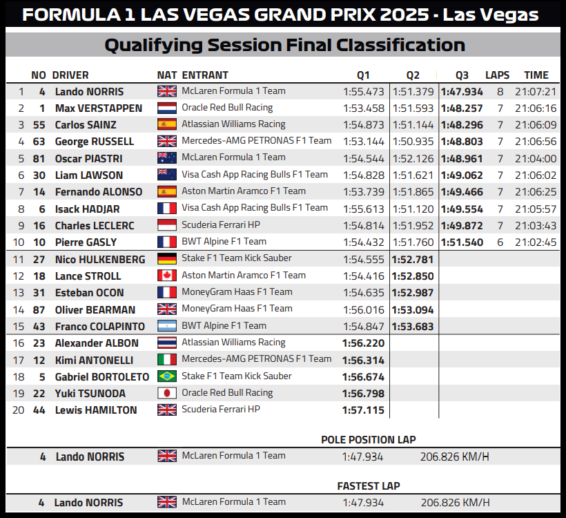 (F1 2025 Las Vegas GP Qualifying Results)