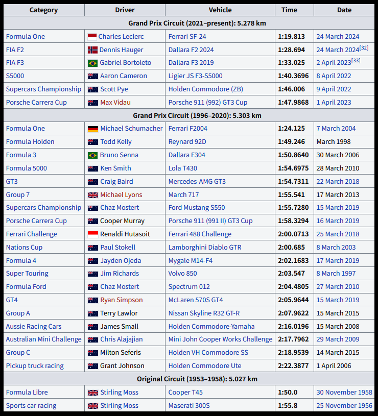 앨버트 파크 서킷 기록들