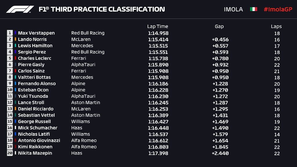(F1 2021 Emilia Romagna GP Qualifying Results)