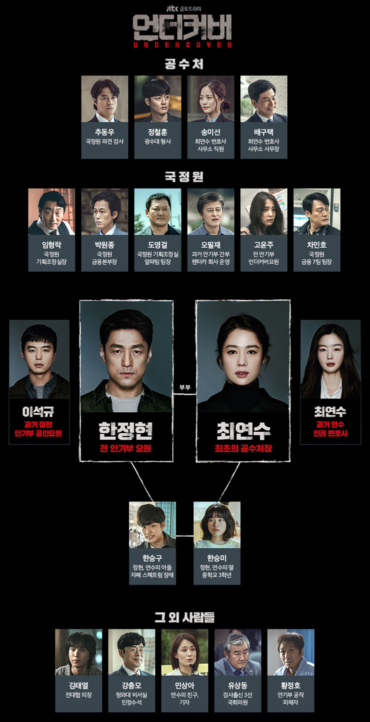 '언더커버'는 2021년 4월 23일부터 JTBC에서 방영되는 금토(밤 11:00)드라마로 자신의 정체를 숨기고 살아온 남자가 일련의 사건에 휘말리며 가족을 지키기 위해 고군분투 하는 이야기를 다루며 영국 BBC에서 2016년에 방영된 동명의 6부작 드라마를 원작으로 하고 있다.