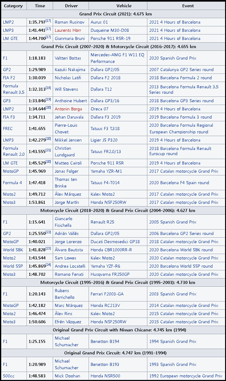 까탈루니아 서킷의 각종 기록들