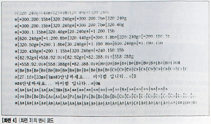 이 밖에 텍스트 앤시 코드가 몇 가지 더 있는데 다음호에서 다루기로 하고, 지금까지 배운 것을 이용해 보자.