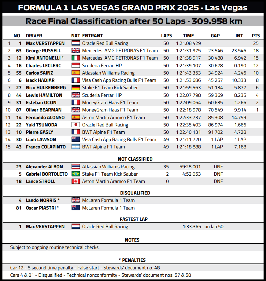 F1.2025.R22 - 라스베가스 그랑프리 레이스 결과( F1 2025 Las Vegas GP Race Results )
