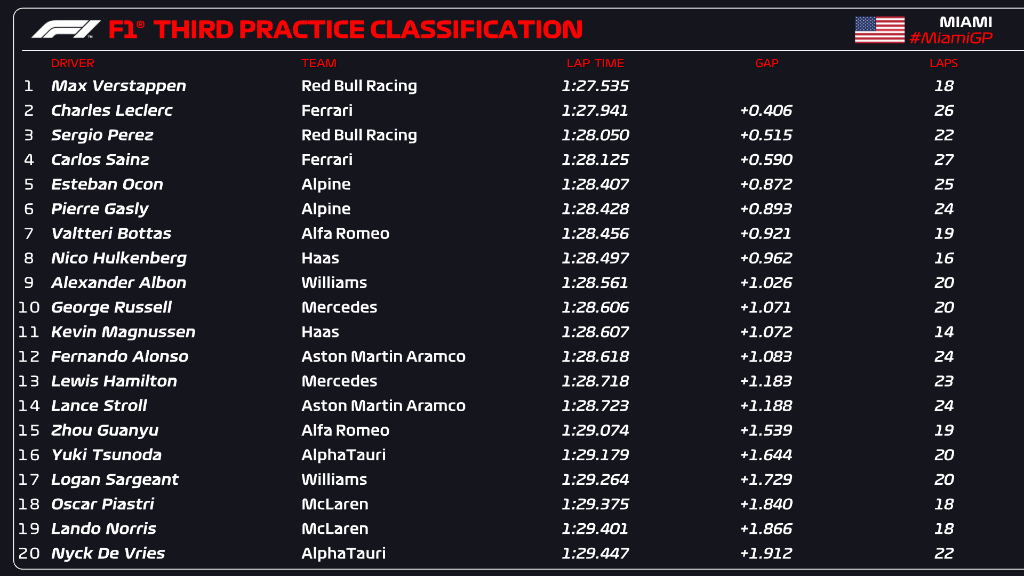 (F1 2023 Miami GP Qualifying Results)