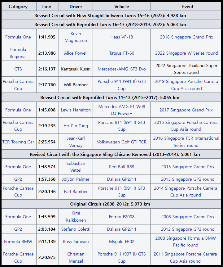 마리나 베이 서킷 각종 기록들