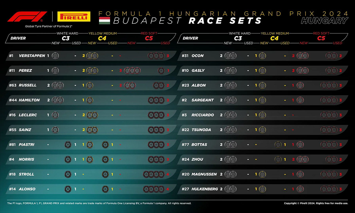 상위권 109명중 알론소와 스트롤 2명만 소프트타이어를 그외 8명은 미디엄타이어를 장착하고 나왔습니다. 16, 17그리드에서 시작하는 페레즈와 러셀은 하드타이어를 장착하고 나왔습니다.