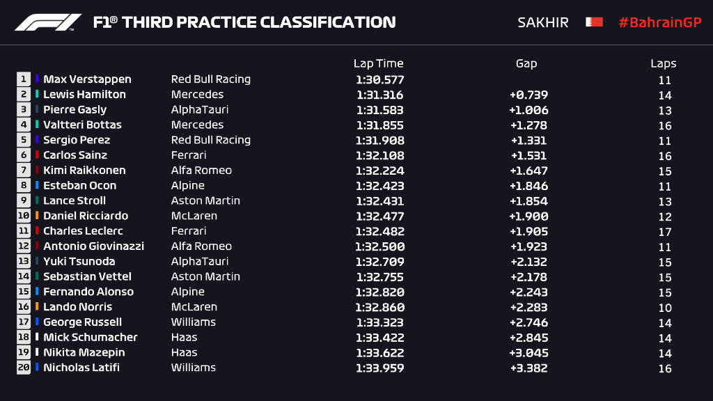 F1 2021 R-01 바레인 그랑프리 예선 결과